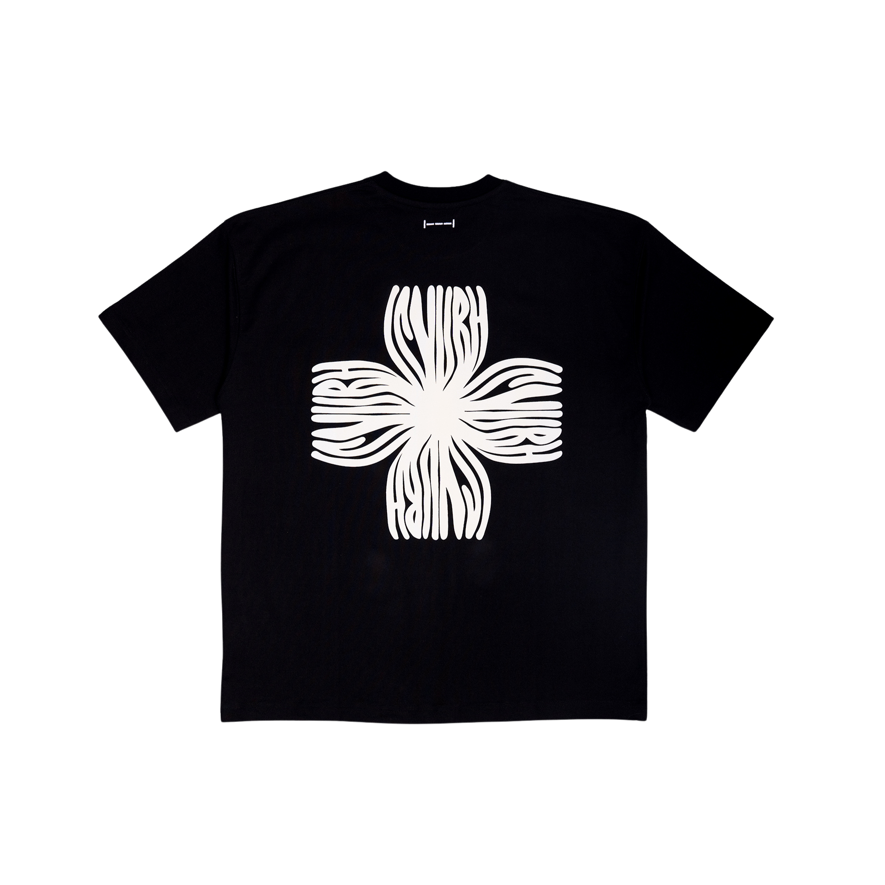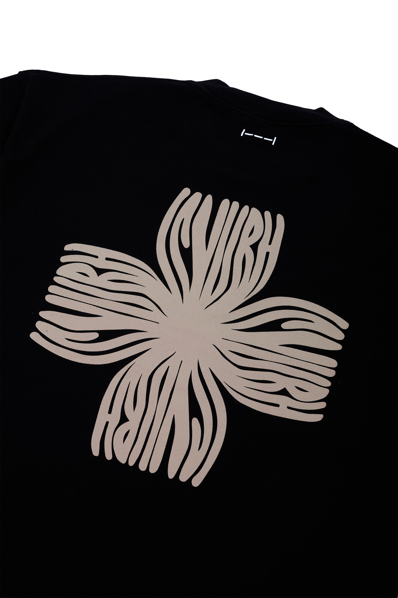 Wide-fit cropped T-shirt featuring a statement flower print on the back.