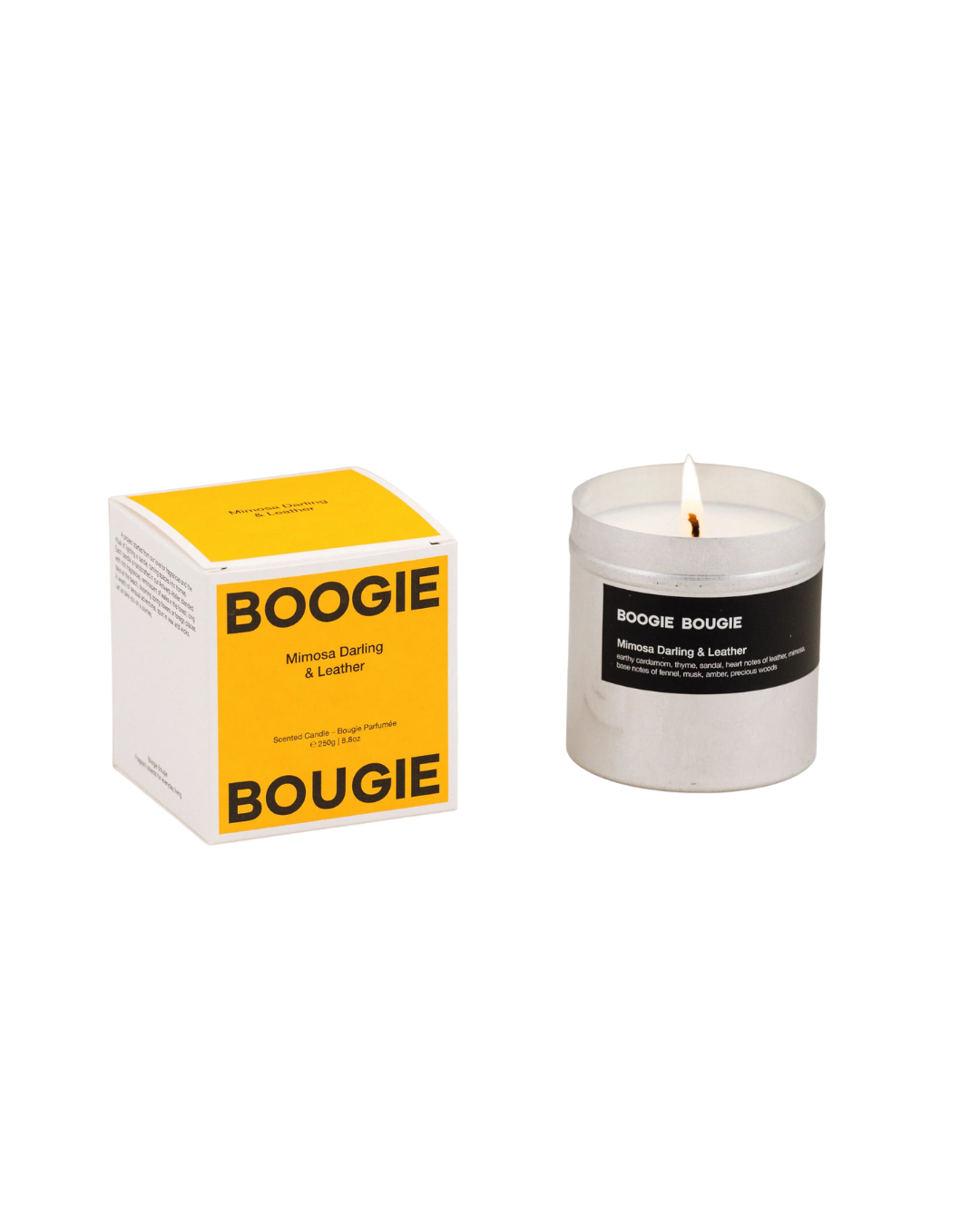 Mimosa Darling & Leather is giving soft florals up front, smooth leather in the middle, and a cozy, creamy vibe that lingers.