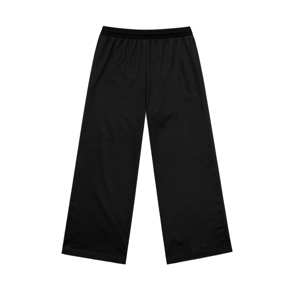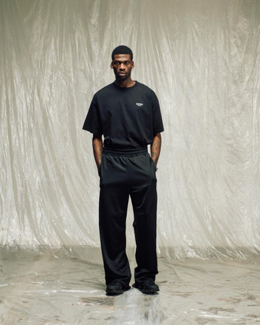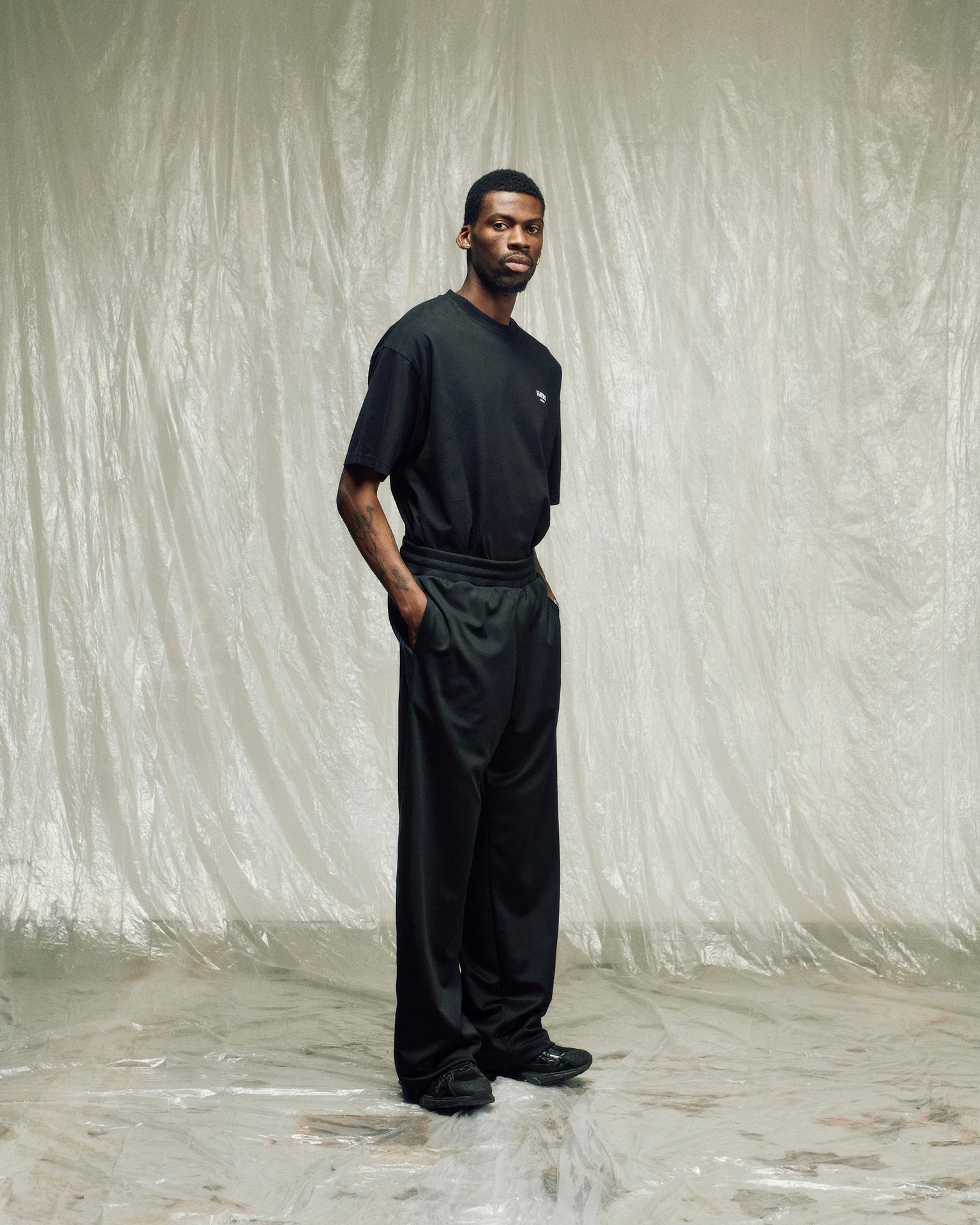 Extra long, wide-leg trackpants with side stripes and subtle patchwork detailing.